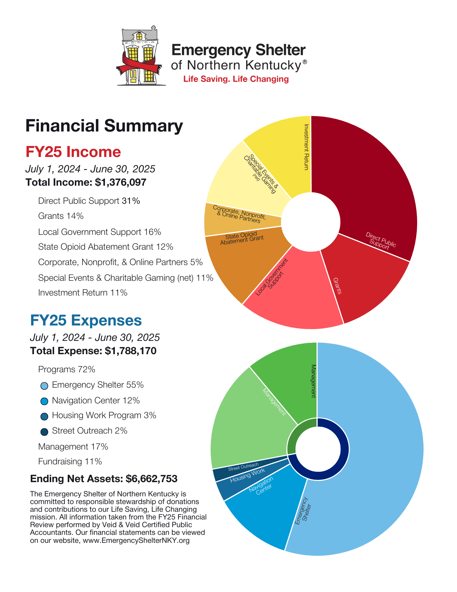 The Emergency Shelter of Northern Kentucky is grateful for all our supporters, donors, and funders who make our Life Saving, Life Changing mission possible. Please see below for a breakdown of financial information.