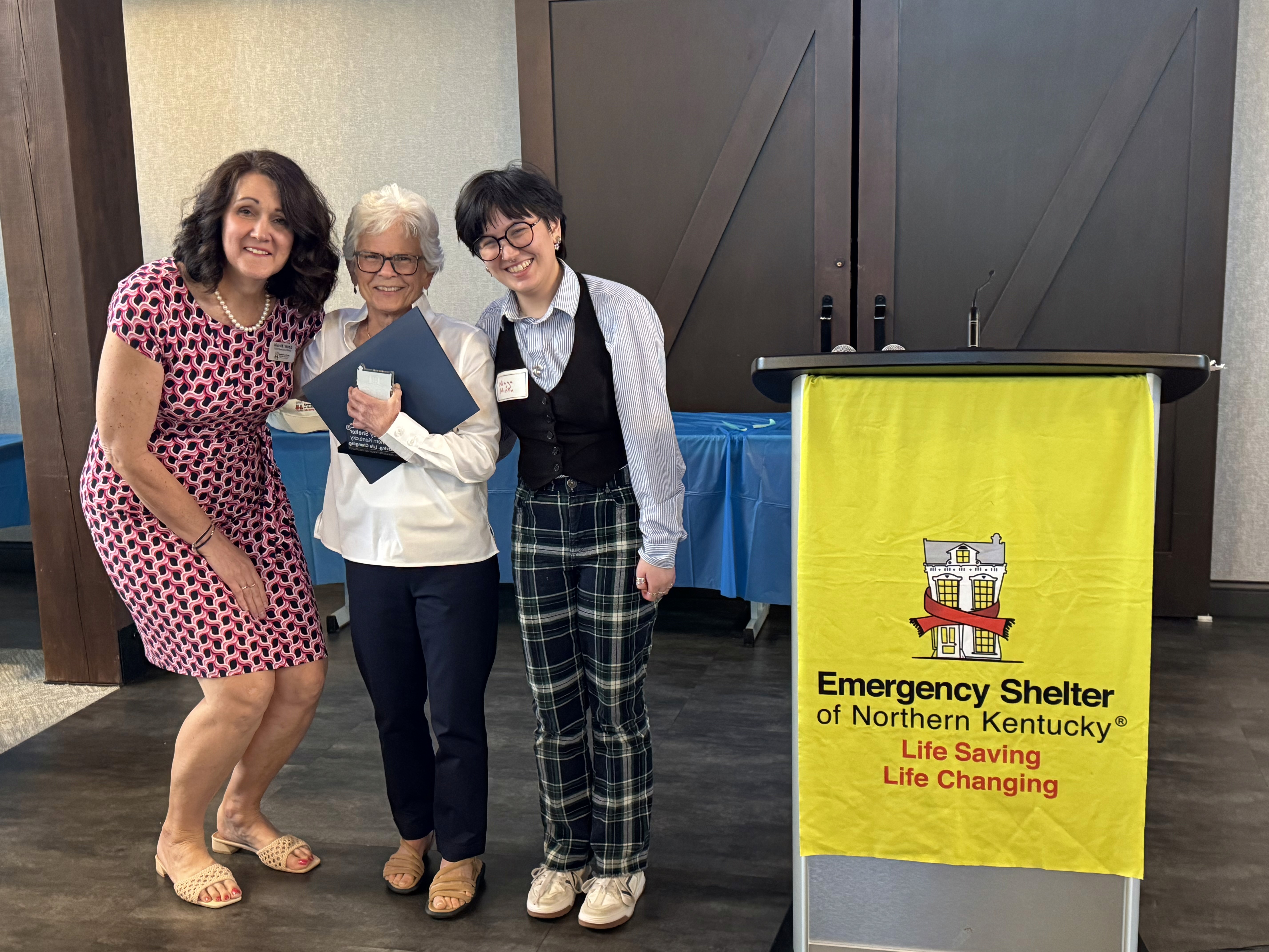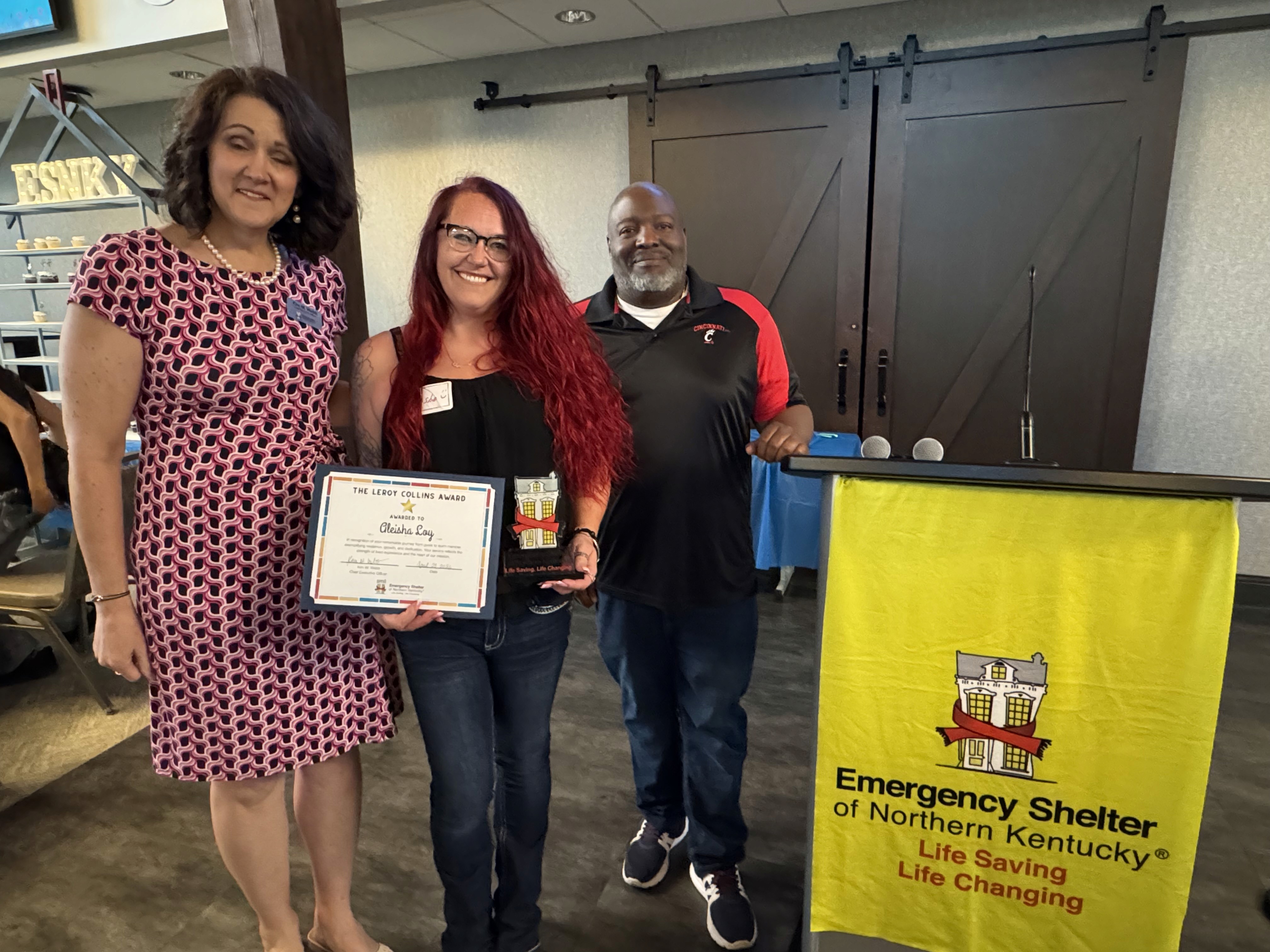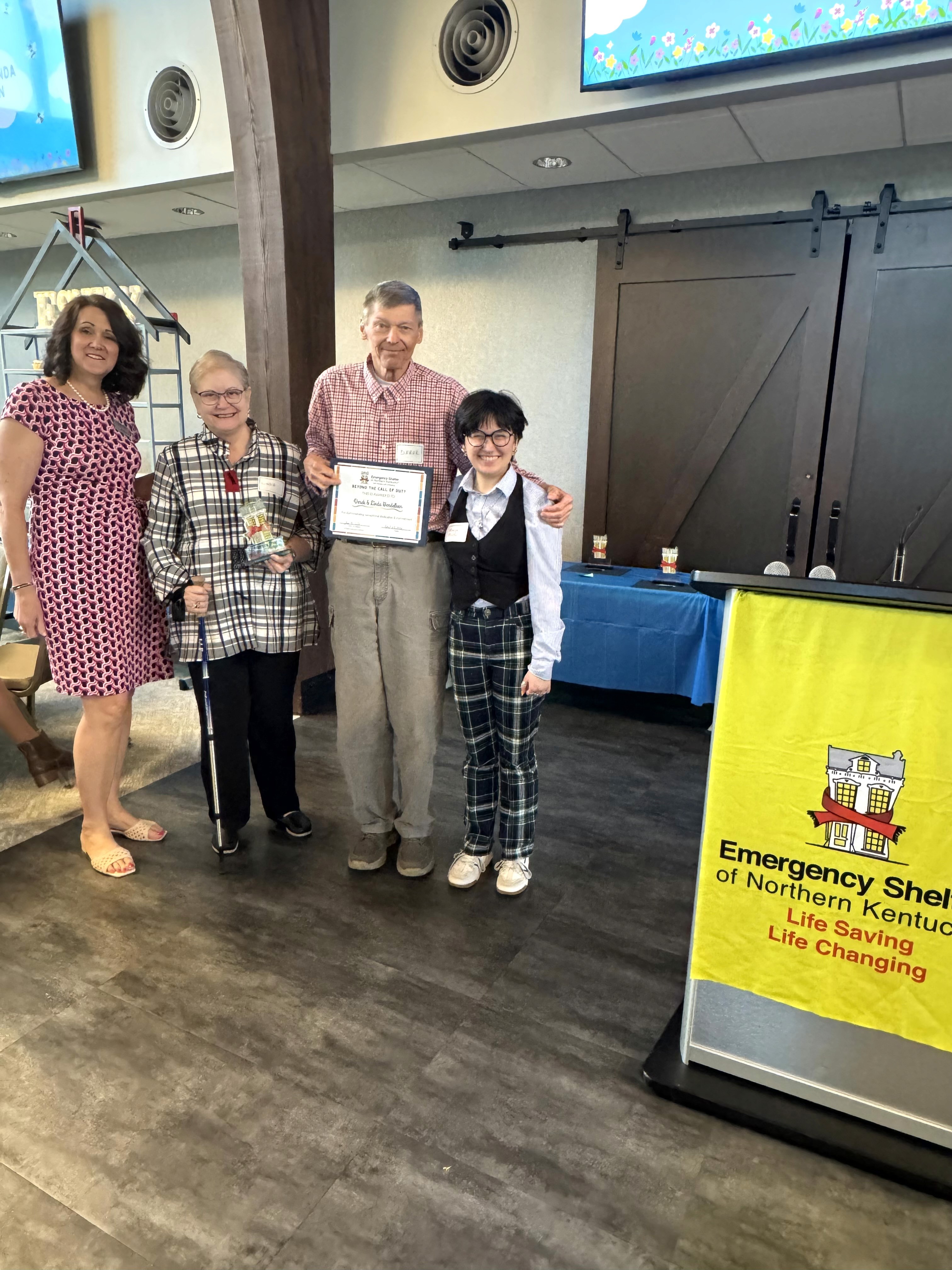 ESNKY’s annual Volunteer Appreciation Awards include the Ralph Drees Impact Award, named for former Kenton County Judge-executive Ralph Drees and given to an individual or group that has had a lasting impact on ESNKY; the Beyond the Call of Duty Awards, which recognize individual volunteers who go above and beyond; and the Leroy Collins Award, which recognizes individuals who have experienced homelessness, and after working to overcome their own circumstances, choose to give back just as Leroy did