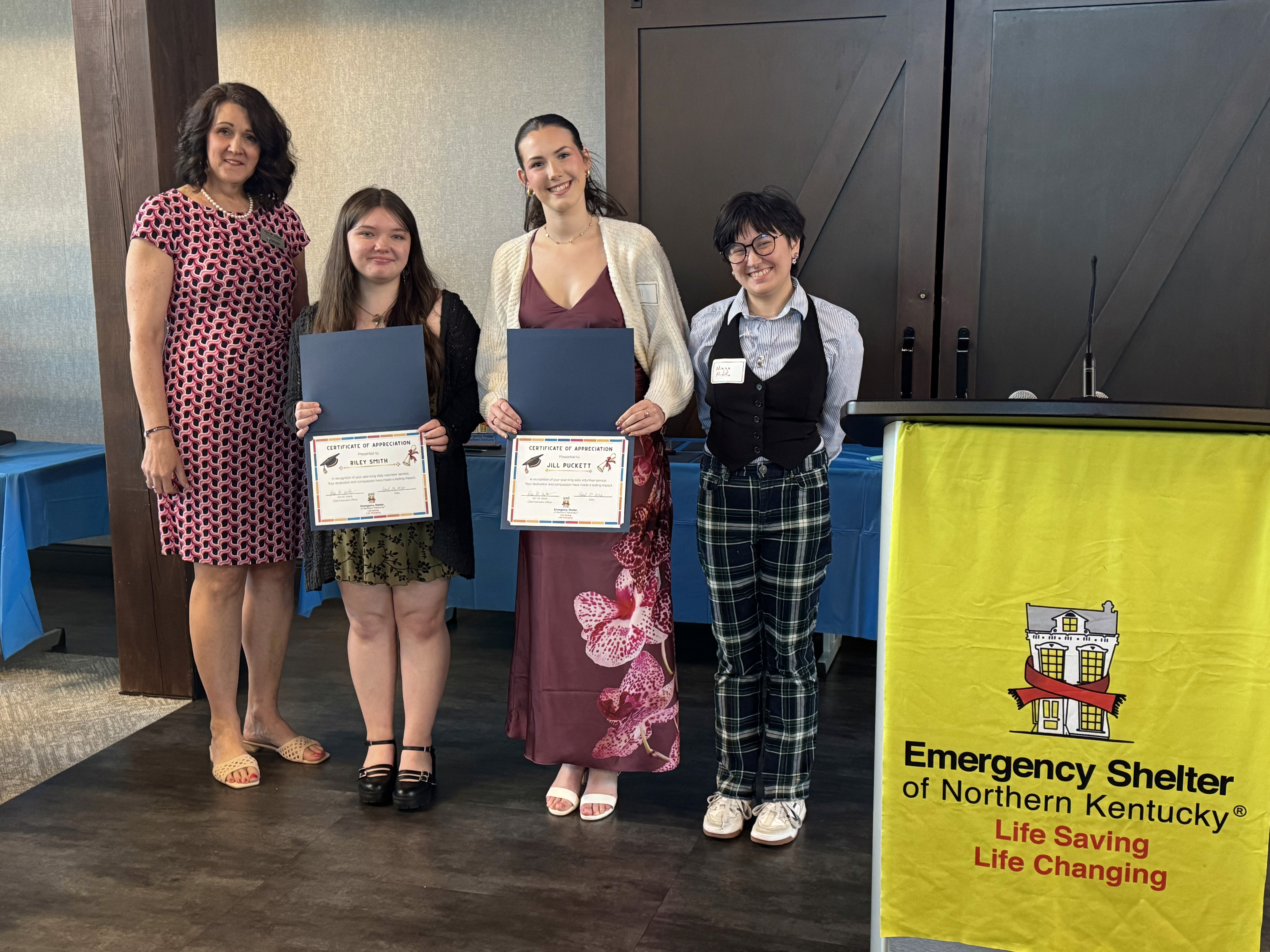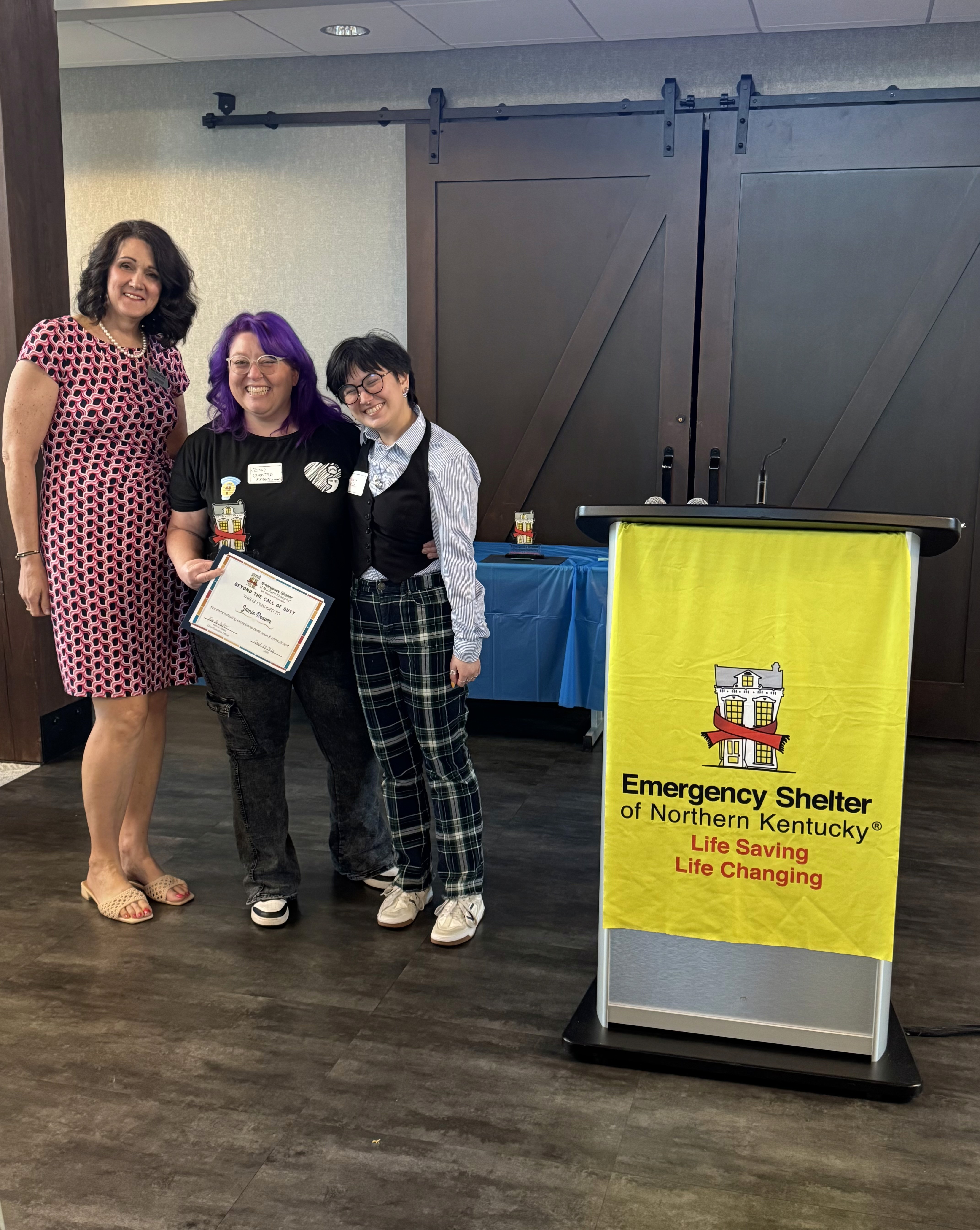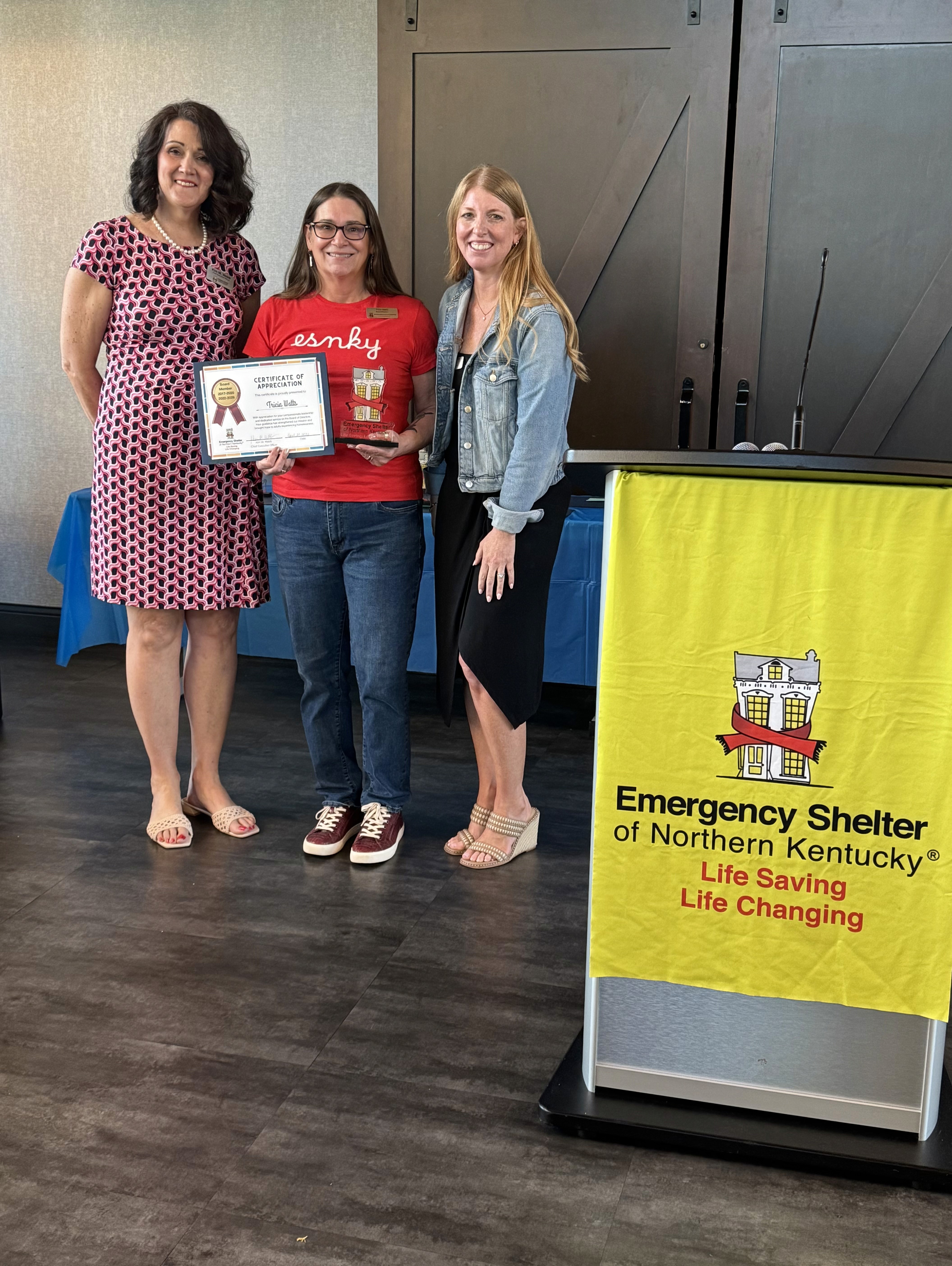ESNKY’s annual Volunteer Appreciation Awards include the Ralph Drees Impact Award, named for former Kenton County Judge-executive Ralph Drees and given to an individual or group that has had a lasting impact on ESNKY; the Beyond the Call of Duty Awards, which recognize individual volunteers who go above and beyond; and the Leroy Collins Award, which recognizes individuals who have experienced homelessness, and after working to overcome their own circumstances, choose to give back just as Leroy did