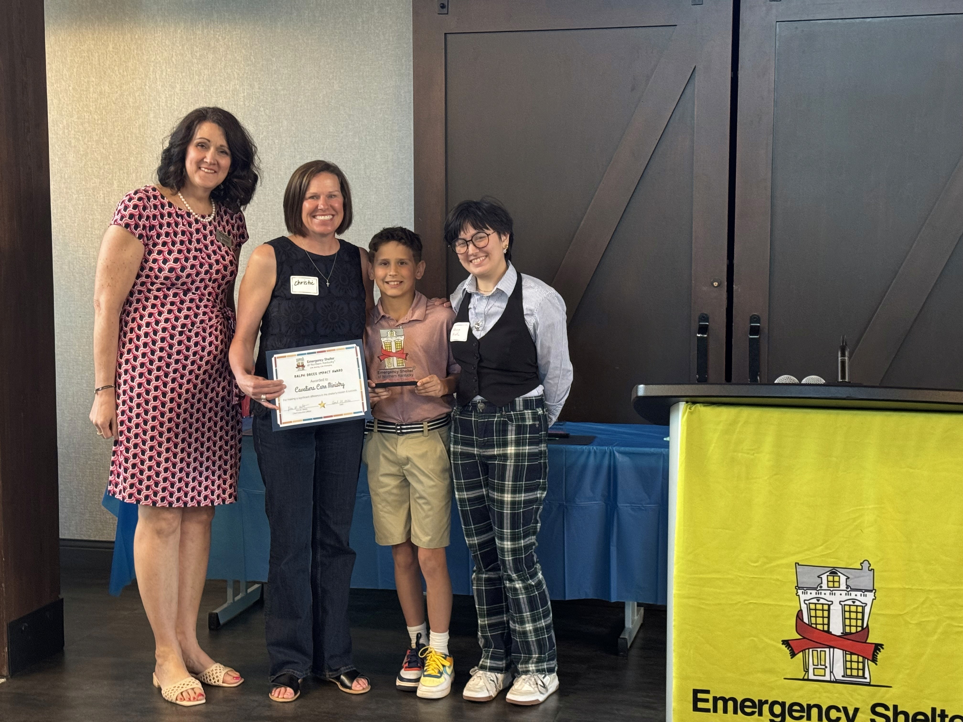 Cavaliers Care Ministry from St. Joseph School with the Ralph Drees Impact Award for their continuous meal service, connecting students and their families with ESNKY’s mission, as well as their Christmas party initiative where students were able to greet and provide table service to the guests, providing a sense of normalcy during the holidays